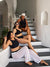 When pairing patterns with solids, consider the dominant colours in the pattern and choose a solid piece that complements one of these hues. This creates a cohesive look that is pleasing to the eye. For example, a solid black bikini bottom can elegantly complement a black and white striped top, offering a classic and chic look.