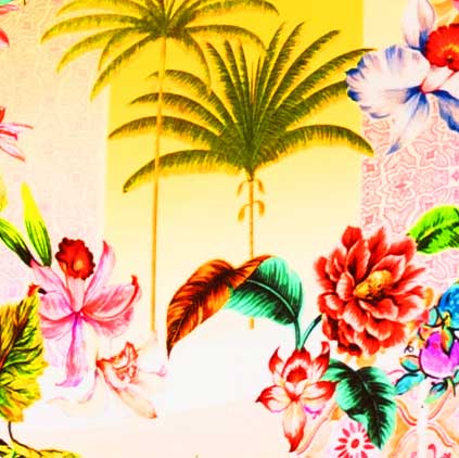 Immerse yourself in the lush beauty of the medertarrinian with bakus newest collection Sardina, this print celebrates islands exotic flora and fauna. This intricate design blendss the vibrant tropical florals with detailed depection of native plants and wildlife creating a mosaic of color and texture