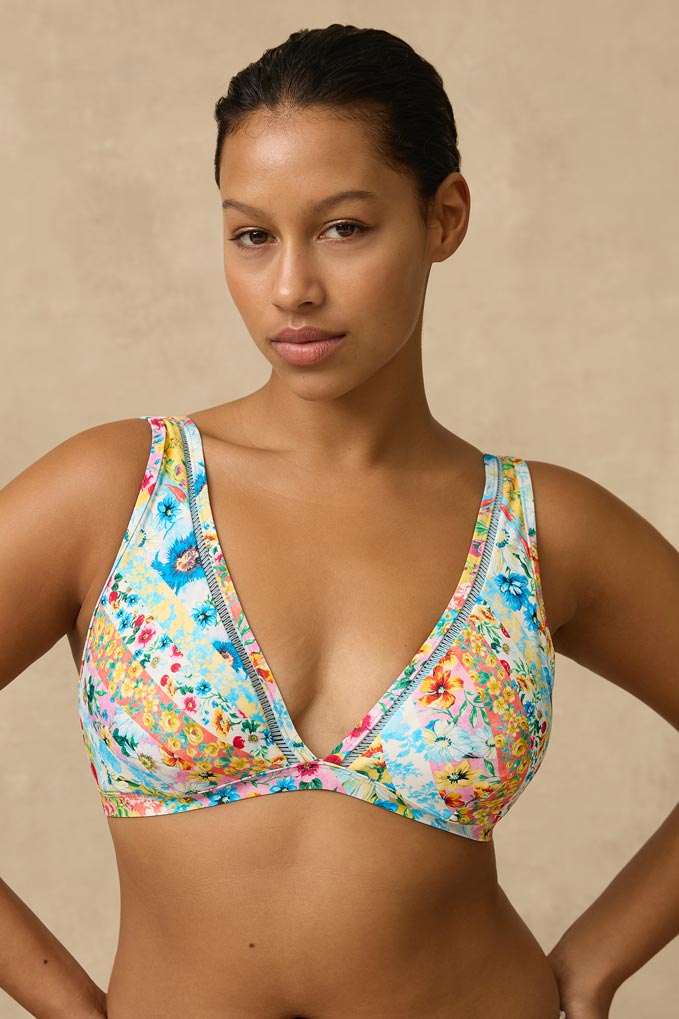 The luxurious Farrah D/DD Longline Tri Bikini top is perfect for those with a fuller bust, featuring a half underwire and wider side bust coverage.