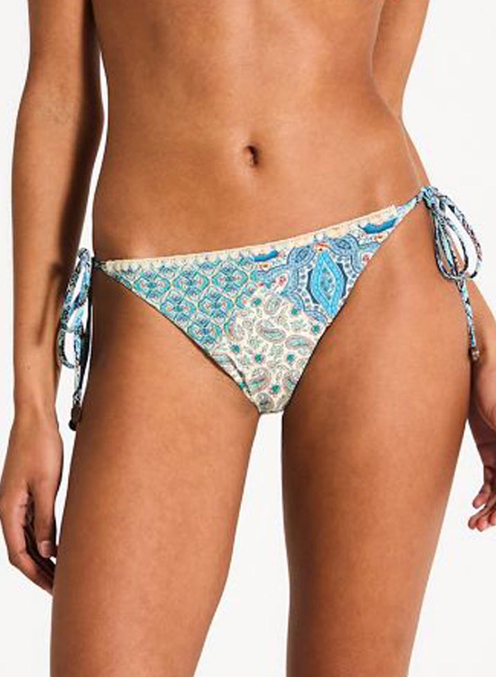 Tigerlily’s Miranda Patchwork Bottoms flaunt a one-of-a-kind patchwork design, edged with stylish blanket stitch trim. Finished with classic side ties and delicate metal charms, they add a touch of playful sophistication to your swim look.